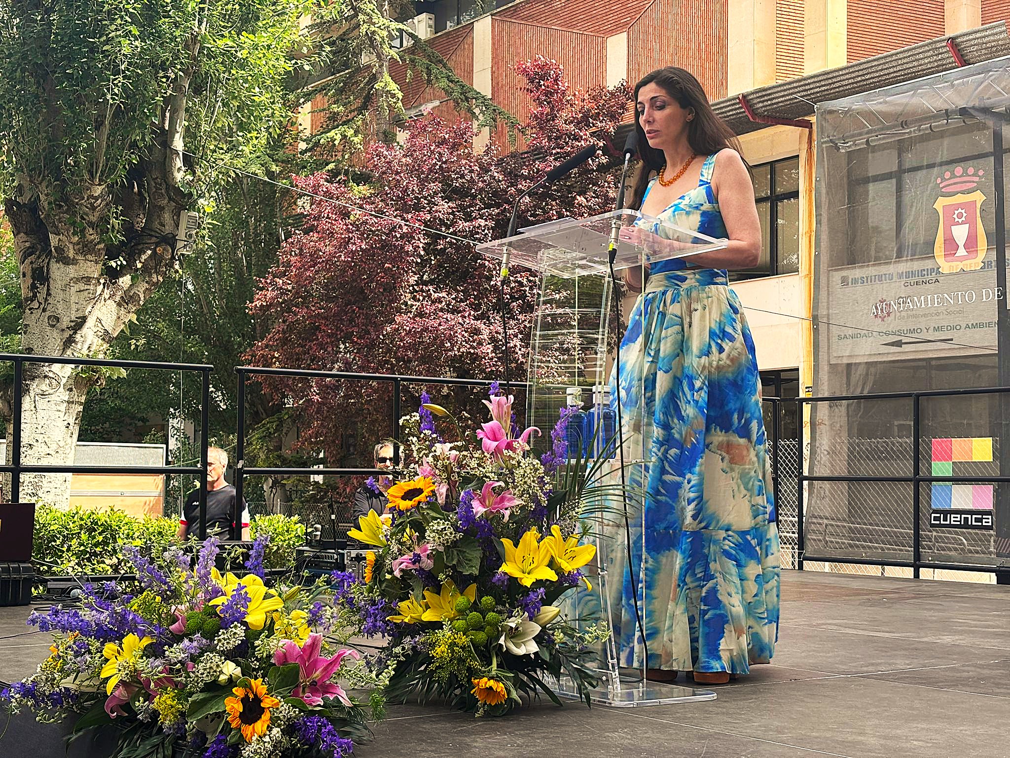 “Cuenca se lee despacio”, ha reiterado la pregonera antes de acordarse de los autores Federico Muelas, Diego Jesús Jiménez, Clara María Jesús, Soco Cordente o a Raúl del Pozo “que está aguardándonos al otro lado del río y que siempre llevaba esta tierra en su mirada”.