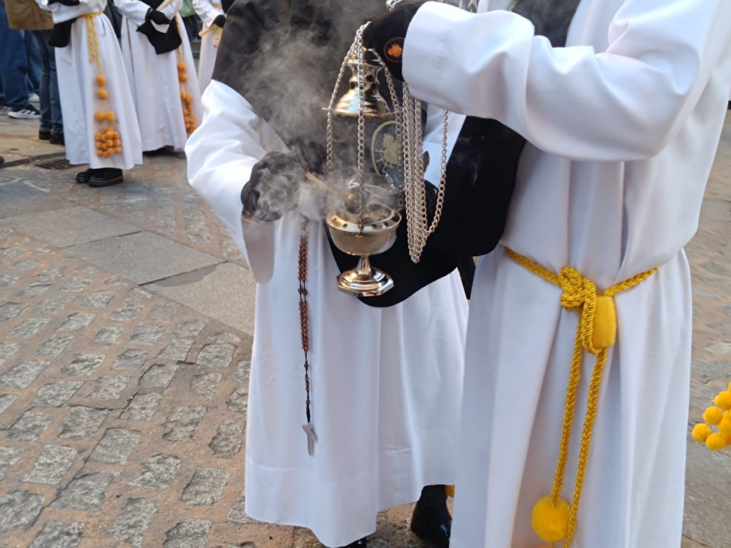En San Esteban, los nazarenos esperan pacientes, concentrados, no se escucha ningún ruido, la Cuenca nazarena está de luto.