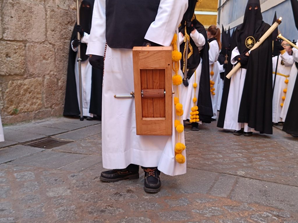 El silencio que acompaña a la tarde solo lo rompe el ruido de la carraca y las matracas que resuenan por las calles de la ciudad.