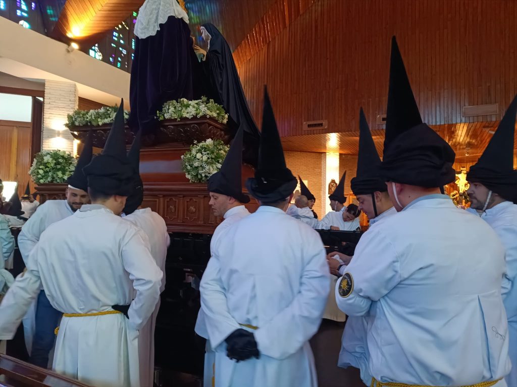 Una vez dentro, con la tenuidad del duelo, el coro entonaba el Stabat Mater mientras los banceros mecían a su imagen dejando un emotivo momento parael recuerdo.